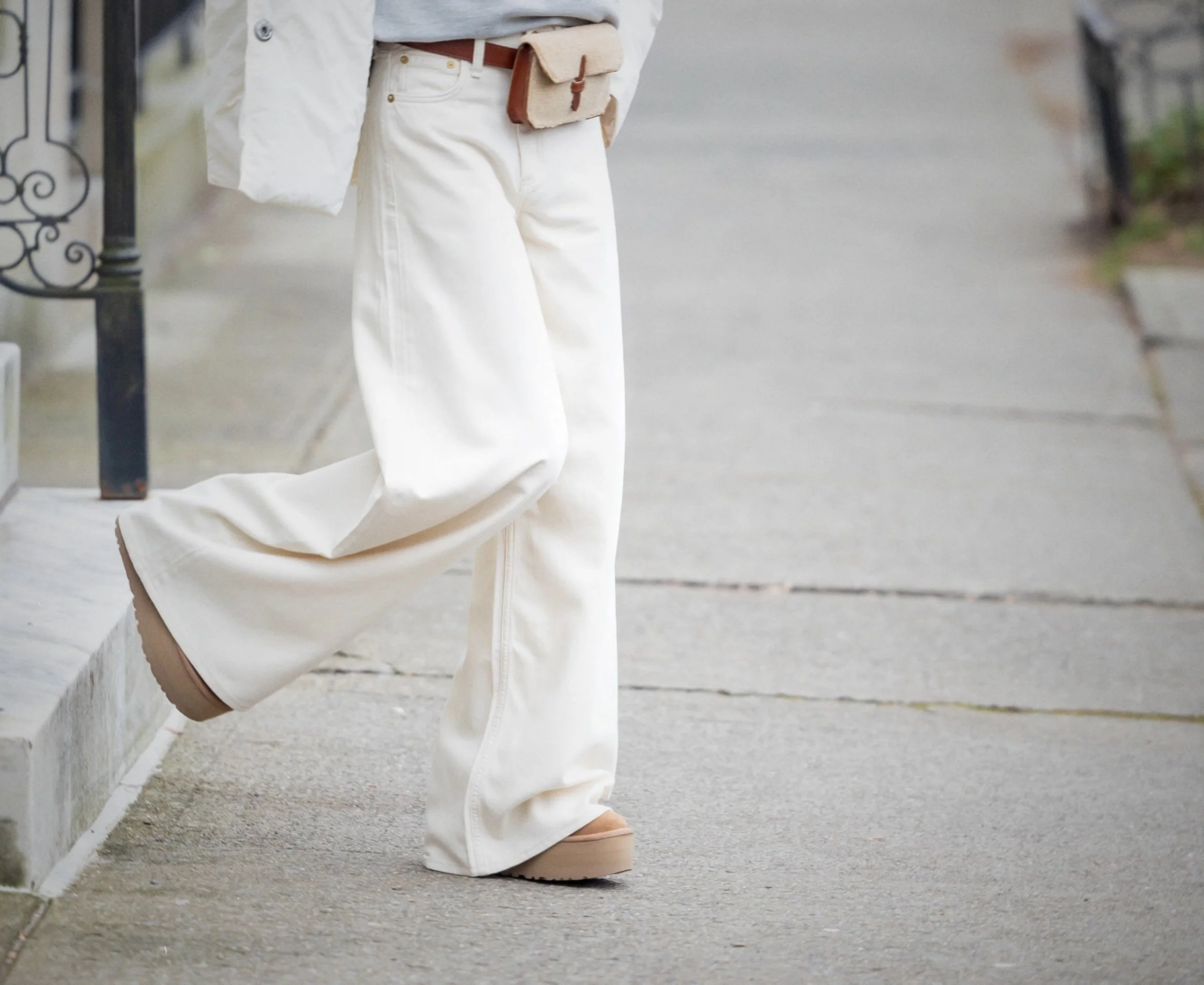 Everything about this look is soft, slouchy, and relaxed…aka the perfect winter weekend outfit. I had been on the hunt for a good pair of super comfortable wide-leg jeans, and these are EXACTLY what I wanted. They are so light-weight they don’t even feel like you have jeans on. They are the perfect midpoint between tidy and relaxed.