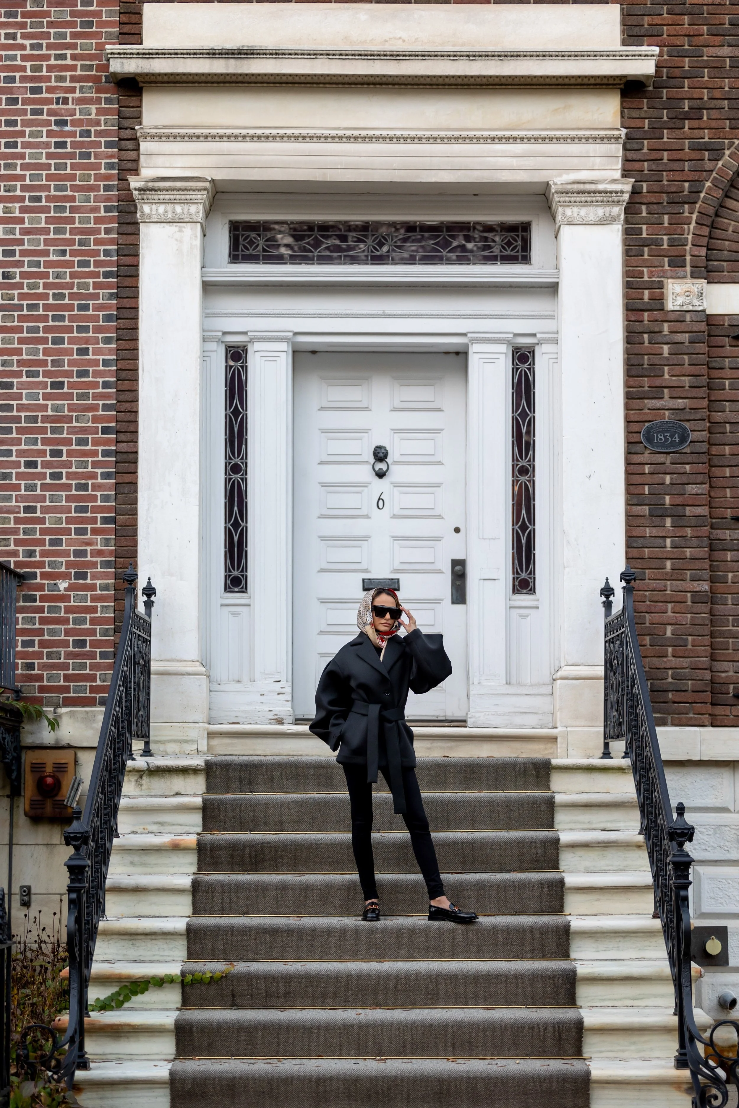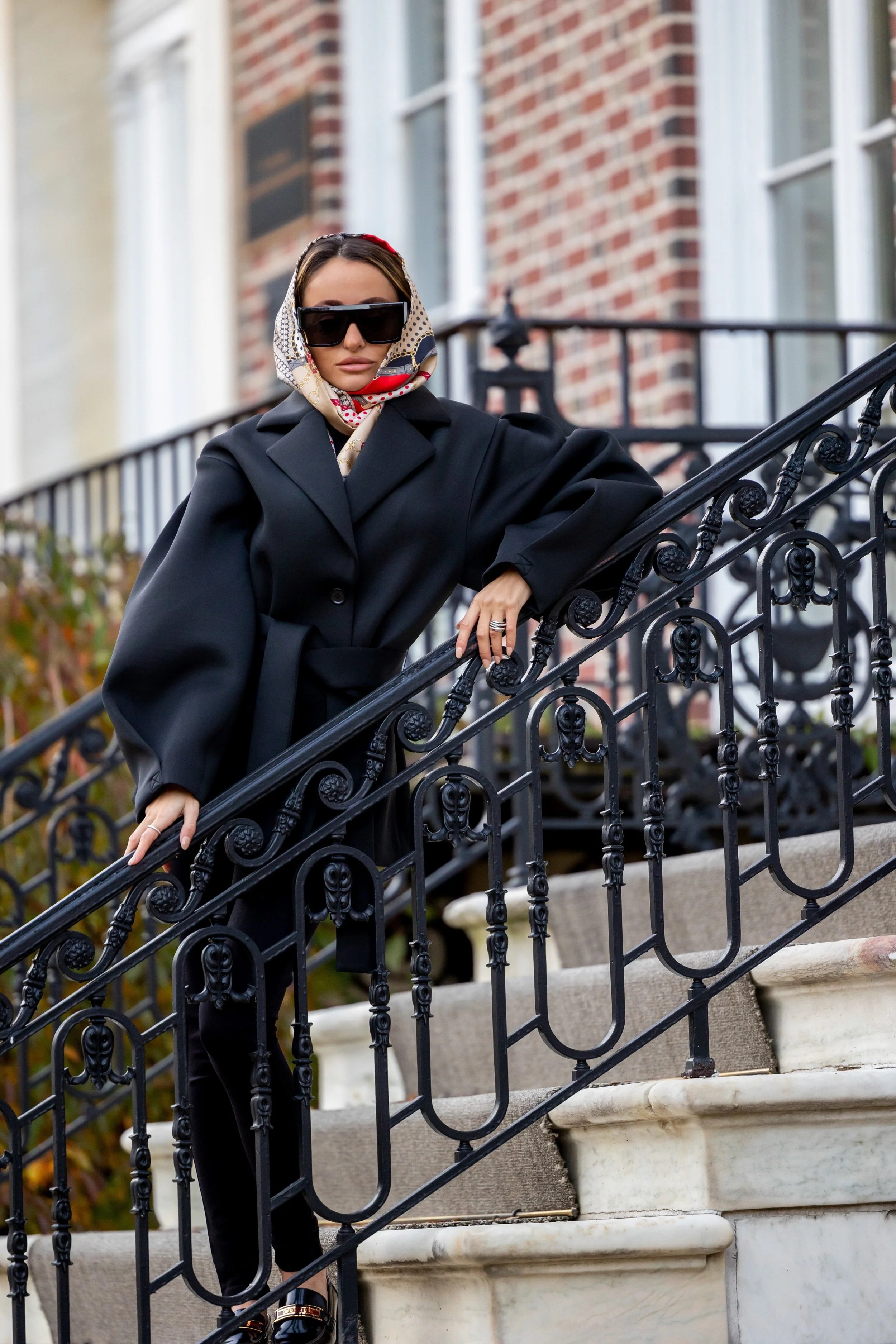 Asos Jacket (sold out/ available here in petite) | J.Crew Pants | Christian Dior Loafers | Intermix Scarf (older) | Celine sunglasses