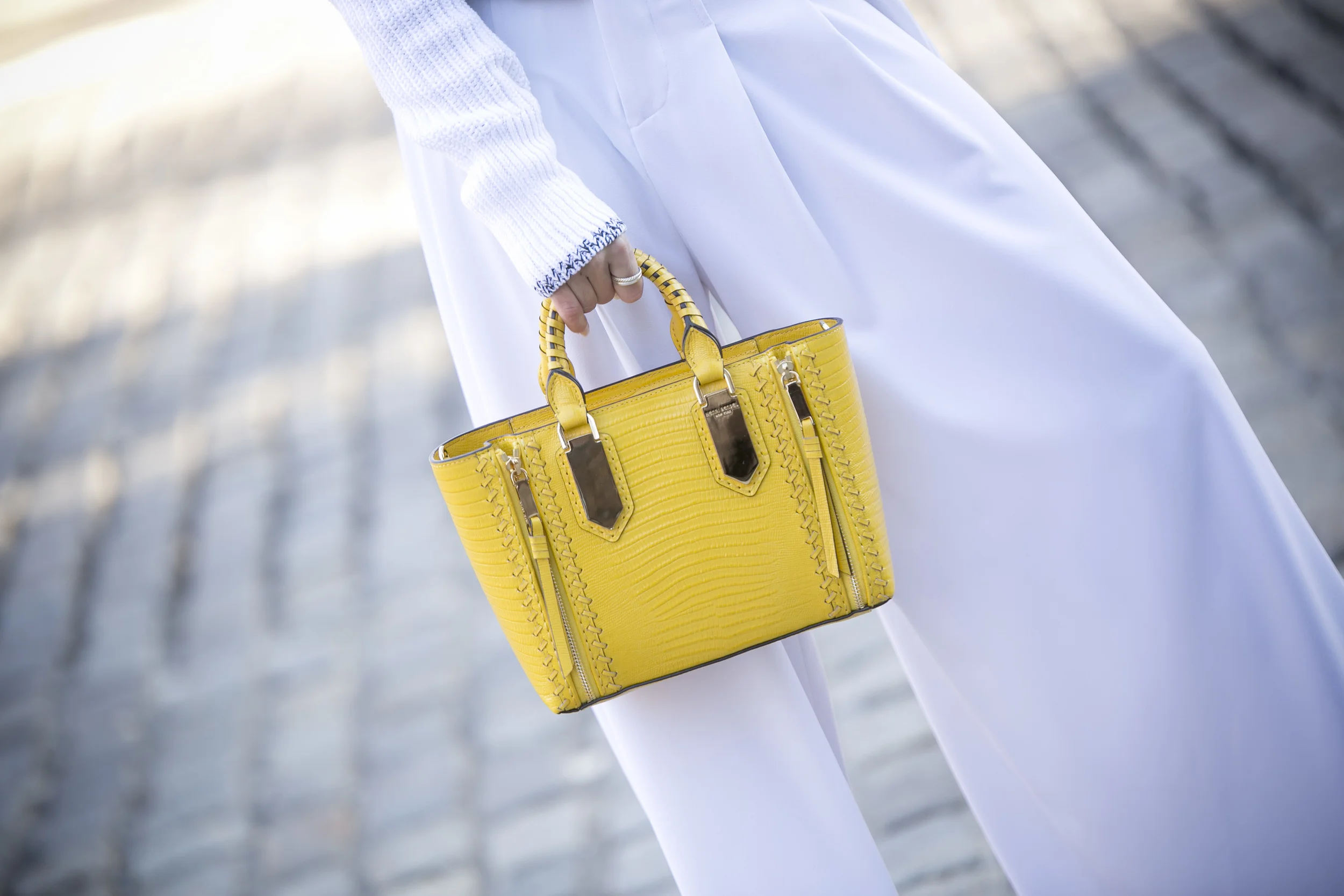 Sweater:Rag&Bone|Pants:Alice&Olivia|Bag:Henri Bendel|Belt:B-Low the Belt