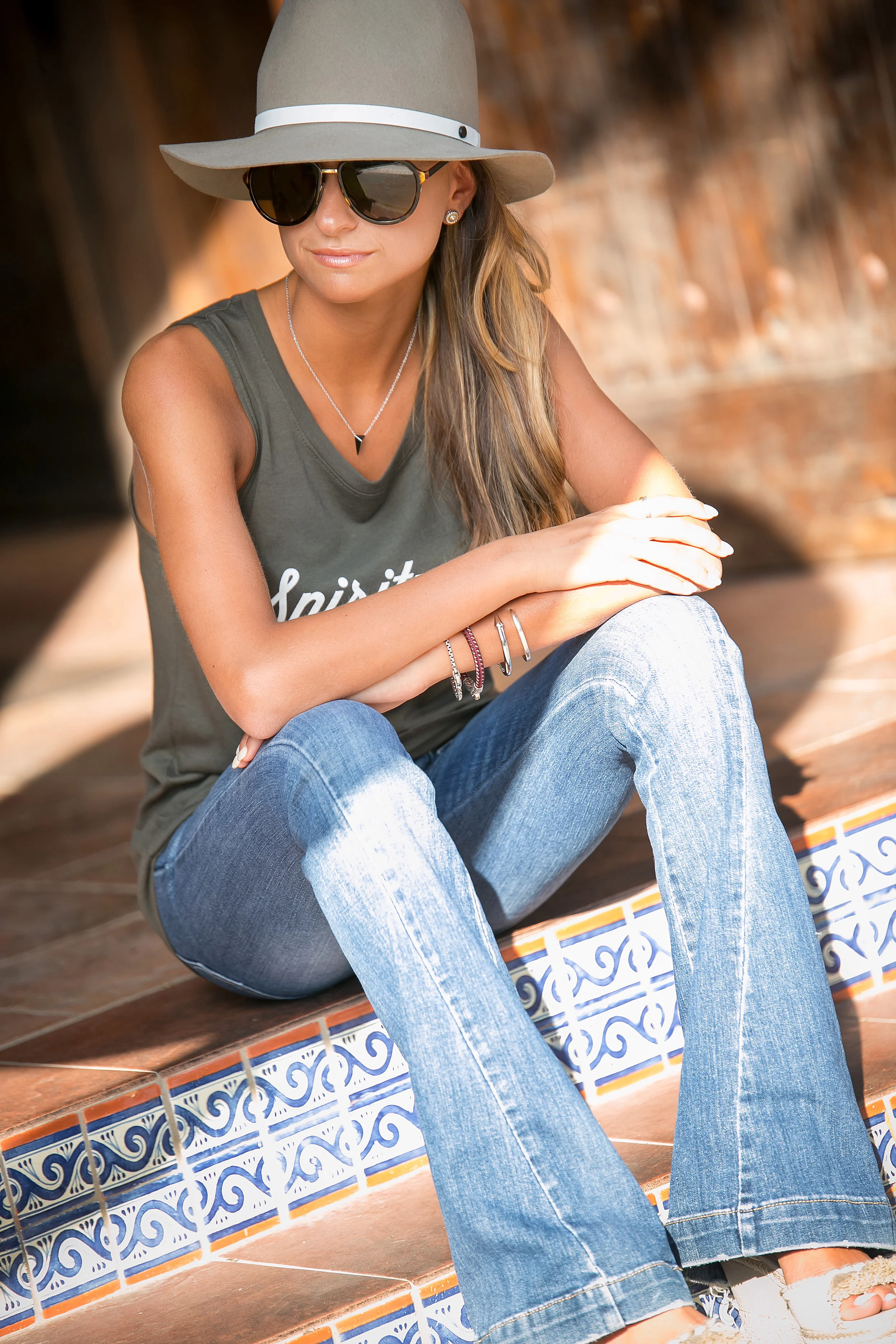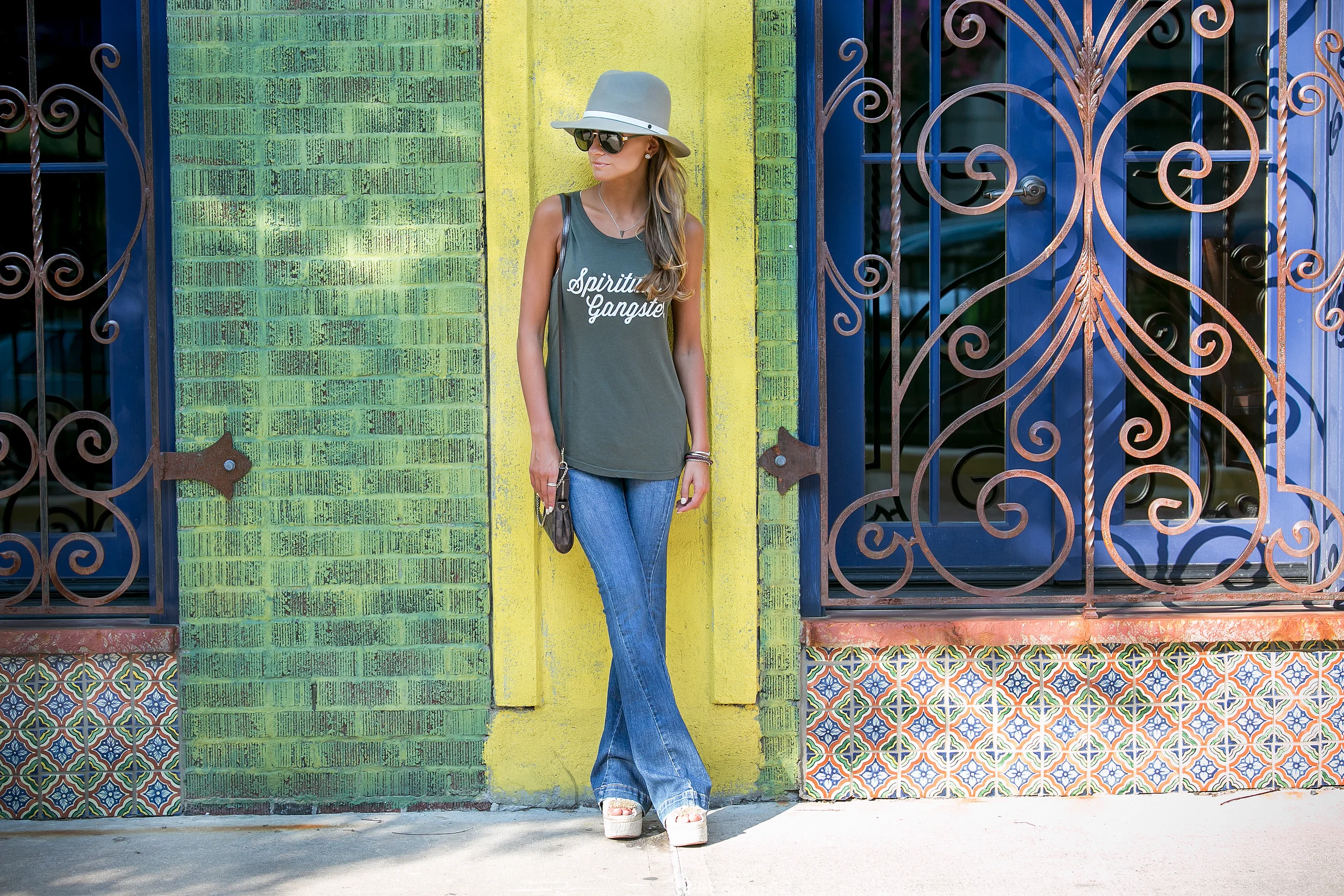 Tank:Spiritual Gangster|Denim:Free People(older)||Wedges:Paul Andrew|Fedora:Rag and Bone|Jewelry:Shoppable Below